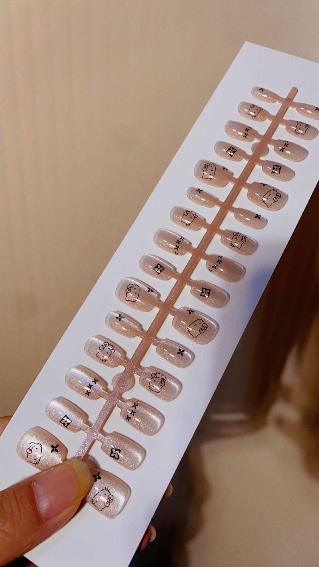 N05 ๐ฑ Hello Kitty Cat Eye Press-On Nails + 24pcs Glue Stickers & Tool Kit