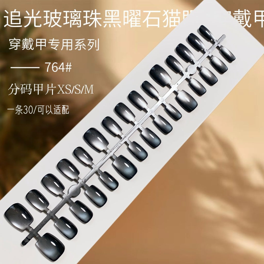 N16 ⚫ Obsidian Glass Beads Aurora Press-On Nails + 24pcs Glue Stickers & Tool Kit